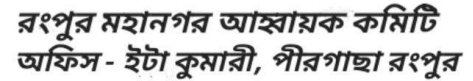 জেলা অফিস কার্যালয়ঃ হাজী সুপার মার্কেট বাঘমারা নবাবগঞ্জ, ঢাকা-১৩২০।